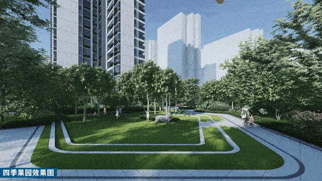 再往里走,社区就呈现了一年四时的园林景不雅,绿浪花圃、紫薇径、四时果园、木棉谷这四大节点就是。