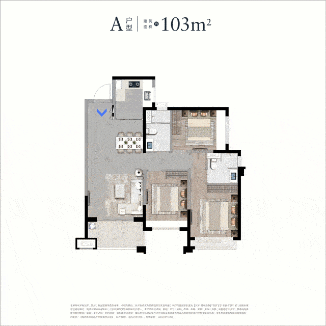 按照规划,项目设想建面约103㎡、113㎡、129㎡三种款式朴直的户型,正在看完它的户型图之后,我们给每个户型提炼了一个环节词,别离为:高得房率、3+X空间、高性价比大户型。