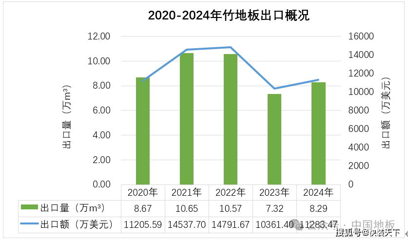 2024年中国竹地板出口量为8。29万立方米,同比增加13。16%。出口额为1。13亿美元,出口量前五的国度别离是美国(占比25。71%)、荷兰(占比11。40%)、马来西亚(占比10。96%)、法国(占比9。03%)、以色列(占比7。91%),马来西亚增加较快,由第十二位跃居至第三位。